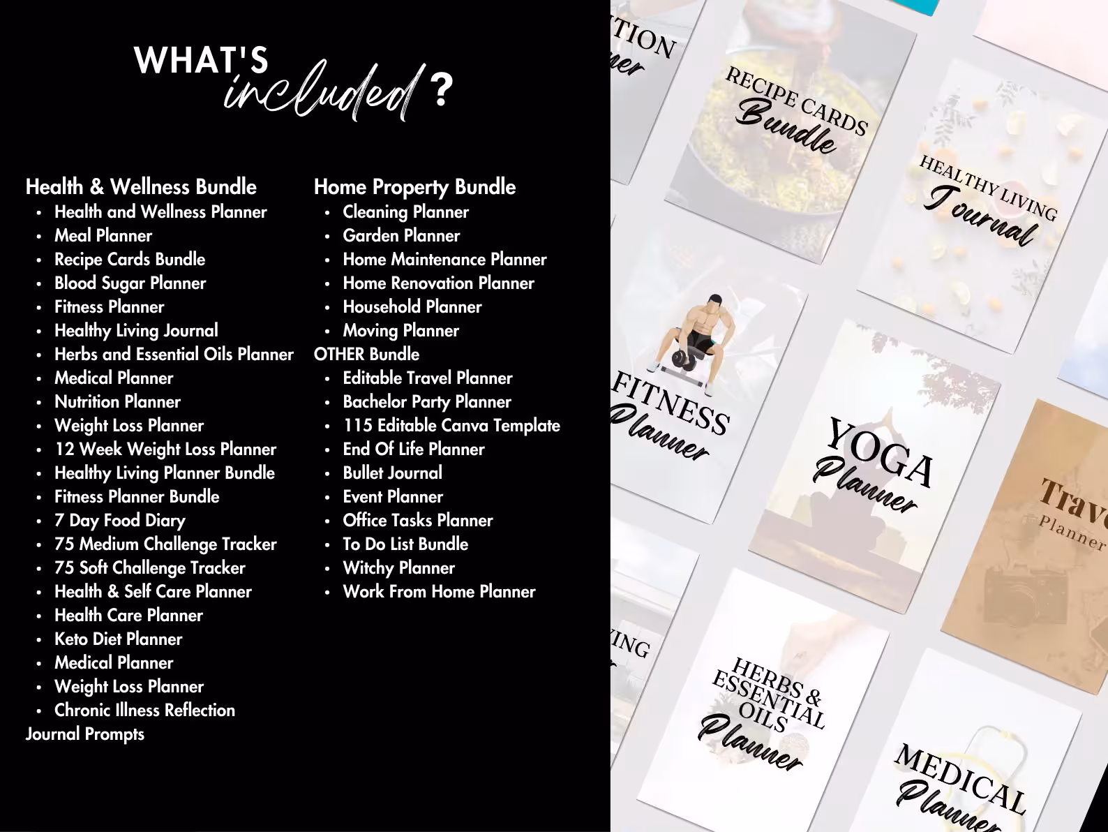Unlock unlimited potential with our Ultimate Mega Bundle a curated collection of 300+ Canva Templates designed to transform your digital products business! Create stunning printable journals effortlessly and take your planning game to the next level.