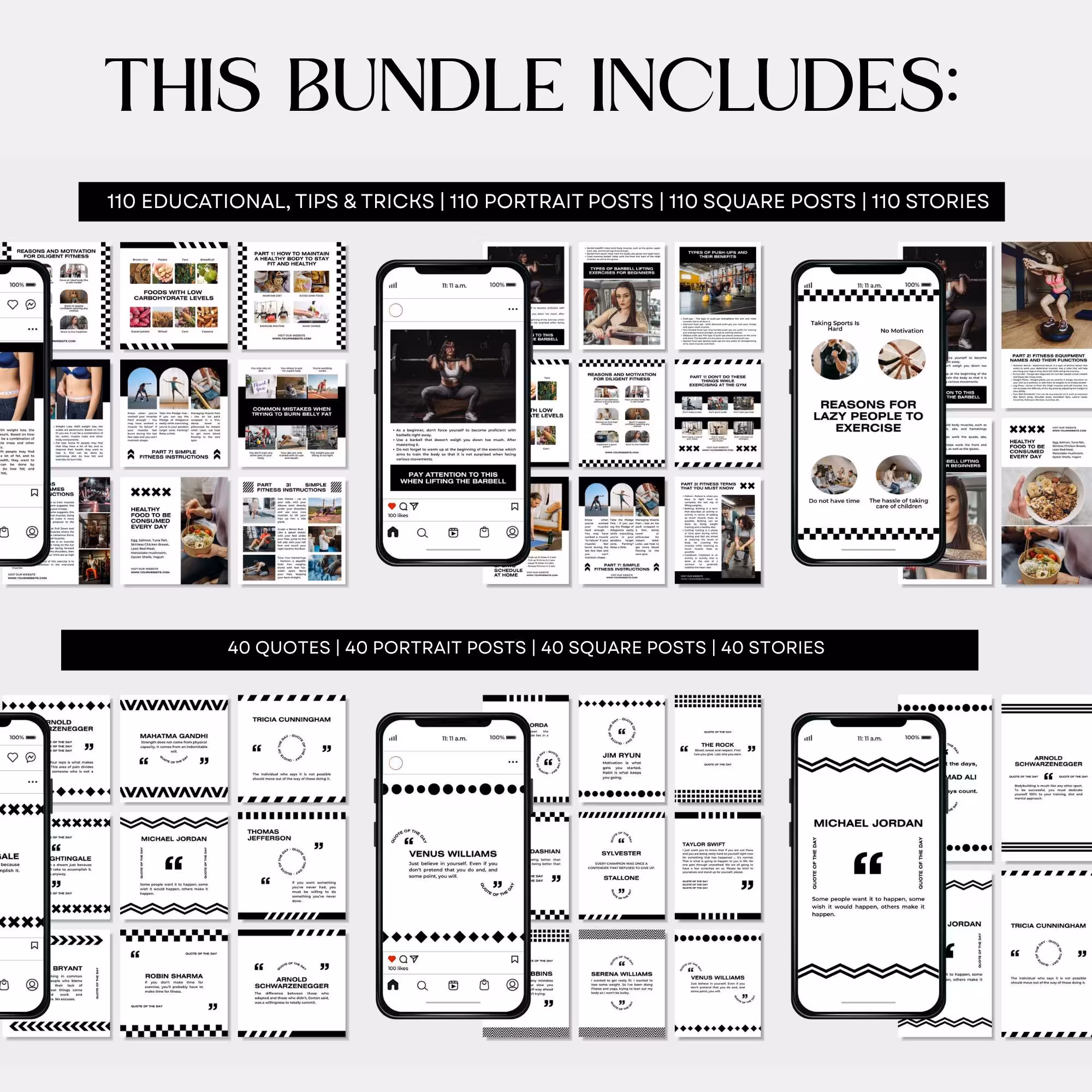 This massive bundle of 1100+ Fitness Instagram Templates is designed to help you build an inspiring, motivational, and high-converting feed — effortlessly.